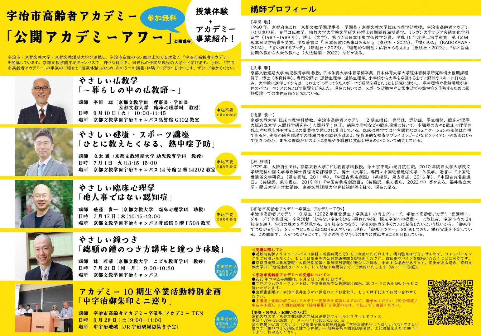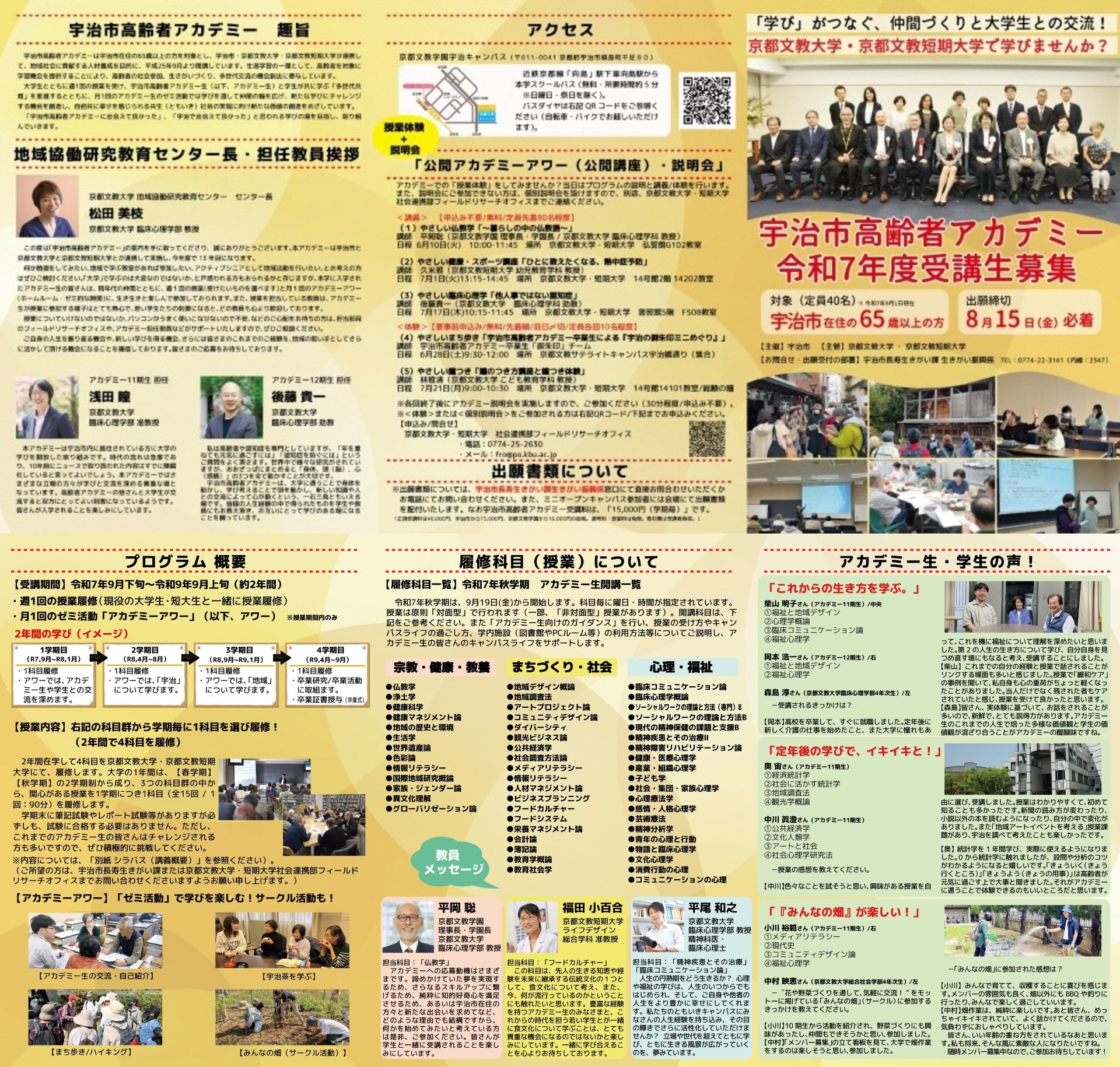 京都文教大学・京都文教短期大学で様々な科目を、同世代の仲間や現役の大学生と共に学べる、高齢者アカデミーの13期生を募集しています。